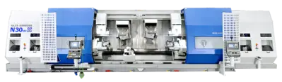 Niles-Simmons Turn & Mill Center N30 MC - Flexible complete machining with incremental turning length up to 3200 mm with one or two separate machining modules - Left and right (optional) turning spindle as powerful motor-driven spindle or gear spindle with high torque and backlash-free rotary axis - 2 independent NC-steady rests can be used - Process combinations: Turning / drilling / milling with universal head Gear hobbing and gear generating External milling with separate crankshaft milling unit