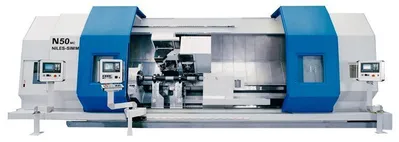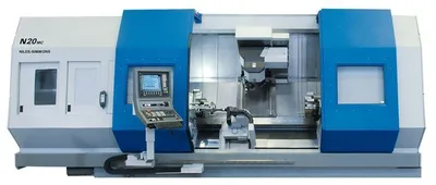 Niles-Simmons Turn & Mill Center N20 MC - Flexible complete machining with incremental turning lengths up to 3000 mm with one or two separate machining modules - Can be equipped with lower tool slide with automatic tool changer - Machining of high temperature-resistant materials, automatic tool changer with integral coolant supply up to 350 bar - Process combinations: - Turning / drilling / milling with universal head - Gear hobbing - 4‑axis turning - Integral grinding facility