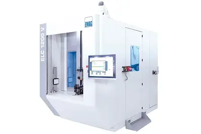 ELC 1200 V Vertical Laser Processing Machine for Shaft Components. The vertical laser processing machine ELC 1200 V is designed for workpieces up to 1200 mm in length and impresses with its fast processing, a small footprint and extreme ease of operation. In addition to laser welding, other laser processes such as laser cleaning and laser hardening can be used on this new machine. ELC 1200 V Vertical Laser Processing Machine with EDNA HMI for easiest operation. The ELC 1200 V offers maximum flexibility in production. The 3-axis laser lens is NC-controlled and can be configured to meet a wide variety of individual requirements. In combination with the NC-controlled C-axis of the clamping device, the welding lens can also produce interpolated welds. This means that, for example, a quick conversion for laser welding of families of parts can be implemented without any problems. The clamping system is, of course, just as flexible as the laser lens. Highlights: - Designed for simple workpieces/processes - Vertical workpiece clamping - Workpiece lengths between 50 mm and 1,200 mm - One or more welds - Flexible due to NC-controlled axes - Cycle times start at approx. 6 seconds - Loading and unloading during machining - Simplified user interface EMAG DNA panel EMAG DNA Panel The key highlight, however, is the graphical user interface with which the machine can be controlled and programmed. HMI Advantages with the ELC 1200 V: - HMI specially developed and optimized for laser applications - Easy-to-learn operation through graphical user guidance - Easy set-up of new workpieces using “Teach in” - SIEMENS CNC screen still fully usable - IoT interface for data-optimized production (connection to IPC and other EDNA software) - Multi-device – data can be called up on mobile devices