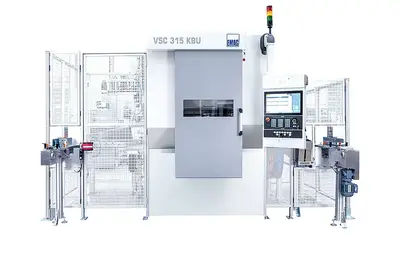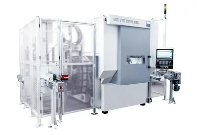 Double-spindle vertical spherical milling and turning center - VSC 315 DUO KBU The VSC 315 DUO KBU sets new standards in efficiency and precision. Specially developed for the high-productivity manufacturing of ball raceways in joint housings (axle journals, joint rings) and ball hubs (joint hubs), it combines the technologies of soft turning, soft milling, hard turning and hard milling and enables the machining of the workpieces in one setup. Double-spindle complete-machining in a single setup The heart of the VSC 315 DUO KBU is the twin spindle arrangement. It enables a significant increase in productivity with consistently high quality. The design of the machine impresses with a double-walled construction, also called gantry design, which in combination with a base body made of polymer concrete ensures maximum stability. This solid base enables both soft and hard machining at the highest level. A special feature is the integration of hard turning and hard milling in one machine. This eliminates possible clamping errors and ensures a consistently high quality of the end product. Another outstanding feature is fully automated production, which allows the machine to be easily integrated into manufacturing systems. Technically, the VSC 315 DUO KBU impresses with two milling heads with milling spindles mounted on an NC swivel unit (B axis). The swivel angle of -30° to +90° and the drive via a torque motor enable flexible and precision simultaneous machining of two workpieces. The two spindle units with maintenance-free AC synchronous spindle motors stand for performance and durability. The triple bearing and thermo-symmetrical construction guarantee constant accuracy and thus reliable product quality. Capacity: - Workpiece length, max.: mm/in 280/11* - Workpiece dia., max.: mm/in 160/6,5* - Ball diameter max.: 30 mm | 1 in