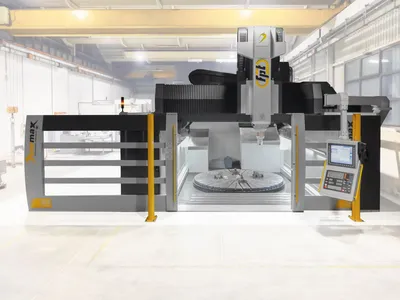 DINOMAX is a moving bridge Gantry-style machine suitable for heavy duty machining as well as high-speed cutting. The optimization of the structures, through use of the most advanced FEM analysis, and the use of drive systems of the most recent generation as well as linear motors, combine the need for high productivity with flexibility and accuracy, setting a new standard in the machine tool field. A specific configuration package allows the use of DINOMAX for complex medium-large sized gear machining, whose accuracy and finishing are typical of teeth grinding machines. A 4-sided safety enclosure surrounds the machining area and the part can be loaded through wide sliding doors at the front. The system can be completed with a movable protection roof with automatic opening, actuated by electric servomotors. The automatic head change is possible on both systems and and guarantees the maximum flexibility without compromises, obtaining the best performances for both roughing and finishing operations. Following FPT philosophy, the thermal expansion control is handled through the thermo-stabilization of internal heat sources, as well as through a thermo-symmetric model that follows temperature variations of the part in a synchronous mode. DINOMAX can be customized with a wide range of options and solutions, satisfying all particular needs of customers, operating in the fields of aerospace industry, power generation parts, high-accuracy machining, molds, dies and styling centers.