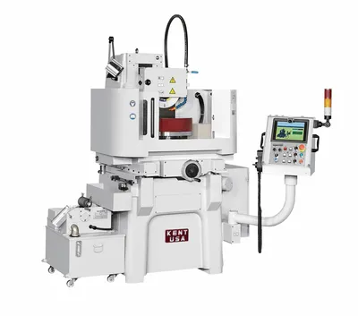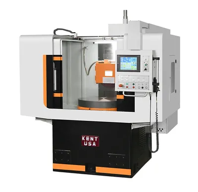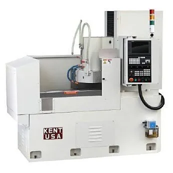 Request A QuoteRotary Grinders The Kent USA Rotary Grinders are capable of working on hard, brittle metal, and mold materials. Our rotary grinders are built with Meehanite Class FC 30 casting for high rigidity and wear resistance, maintaining operation accuracy. This is in addition to their spindle’s lateral design which creates stability during heavy cutting. - Precision and high efficient grinding process. - Peripheral grinding allows for best finishes. - Servo downfeed and crossfeed motors for quicker setups. - Flatness tolerance within 0.0002”; Quiet and clean operation in a full enclosure work envelope. - 10″ LCD touch screen conversational control system, simple and intuitive to operate. - Auto rotary speed adjustment simulating constant surface speed - Auto-downfeed by Mitsubishi servo motor drive.